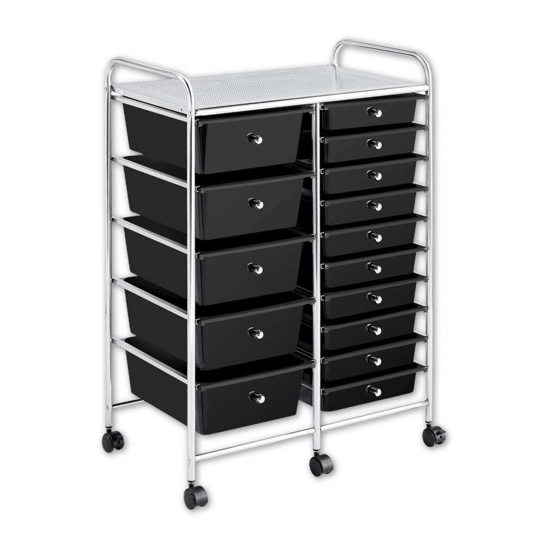 - Spacious & Versatile Organisation – Features 15 independent drawers in two sizes, offering efficient storage for office supplies, cosmetics, tools, magazines, and more. Sleek black drawers paired with a silver steel frame make it ideal for home, office, salon, or studio use.