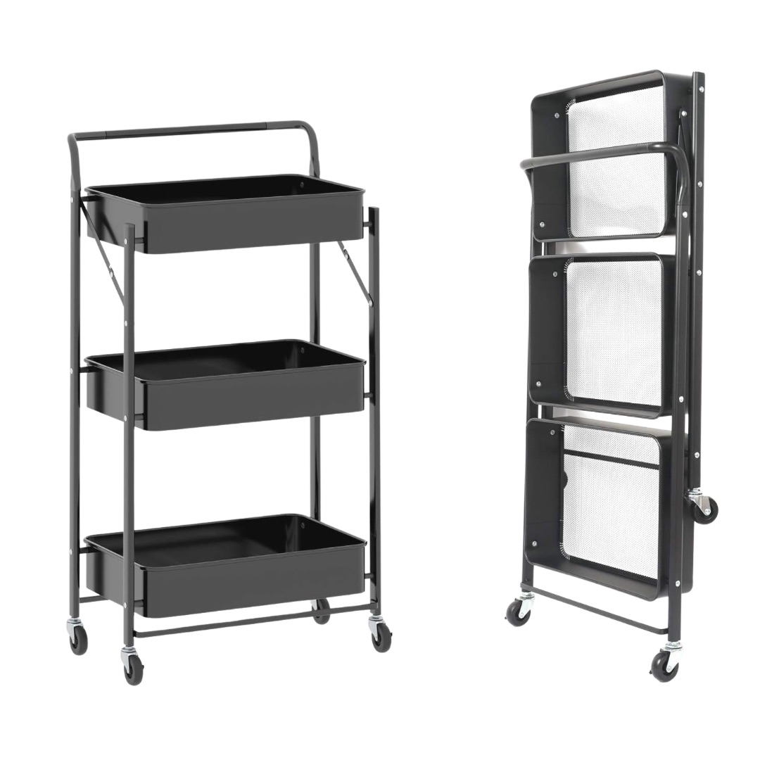 3-Tier Metal Rolling Organiser Cart with Casters – Black