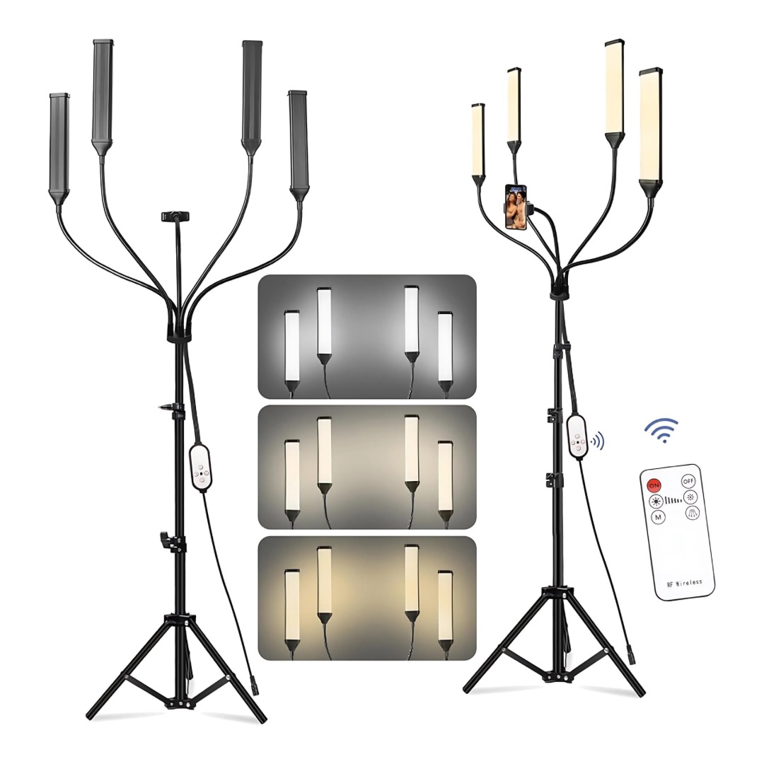 Four-Arm LED Studio Light with Tripod and Phone Holder